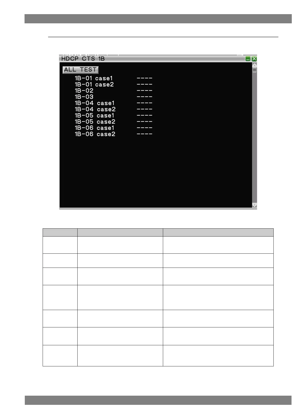 When a test ID number is clicked with the mouse, the selected test is started. While testing is in progress, the