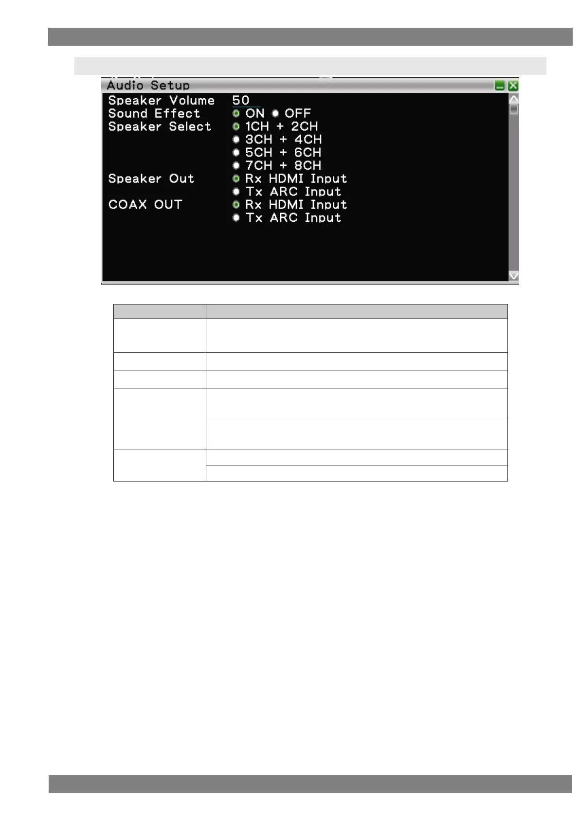 When Tx ARC Input is selected, the sound from ARC is output to coaxial.