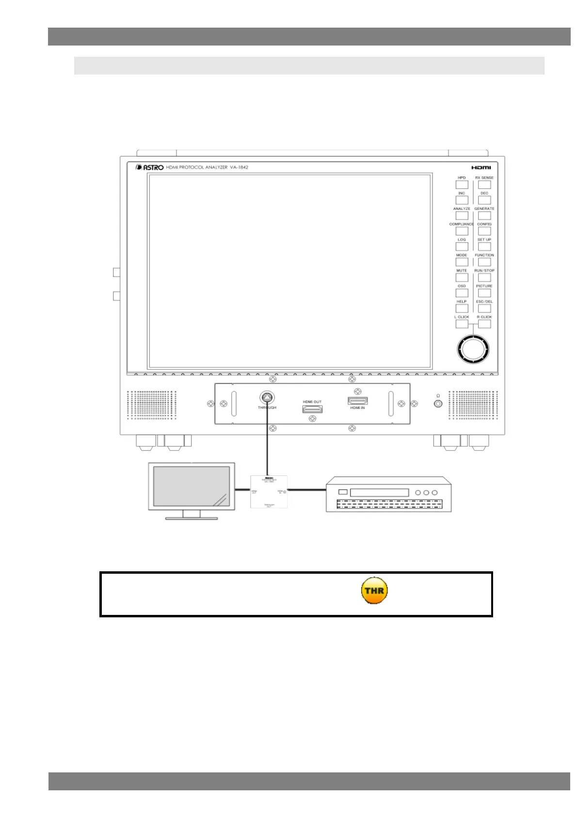 By connecting a through box to the HDMI THROUGH connector of the VA-1842, you can check that an HDMI