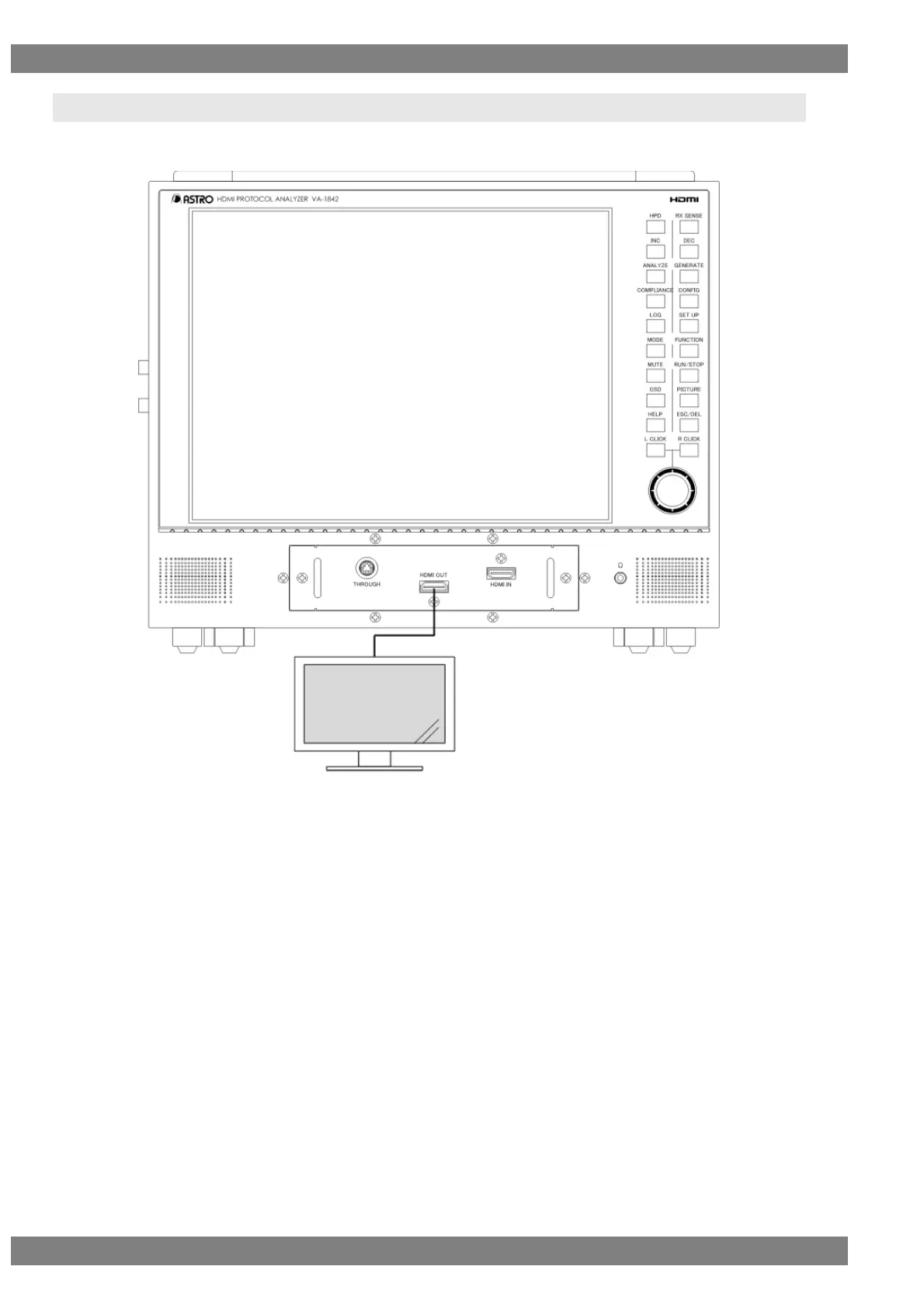 Generate video signals from the VA-1842 and measure the display of HDMI compatible monitors.