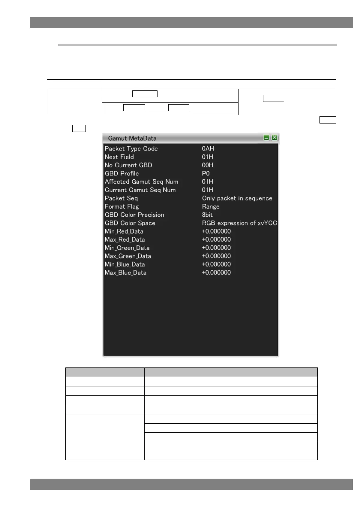 The Gamut Metadata Packet display items when GUI display are as follows.