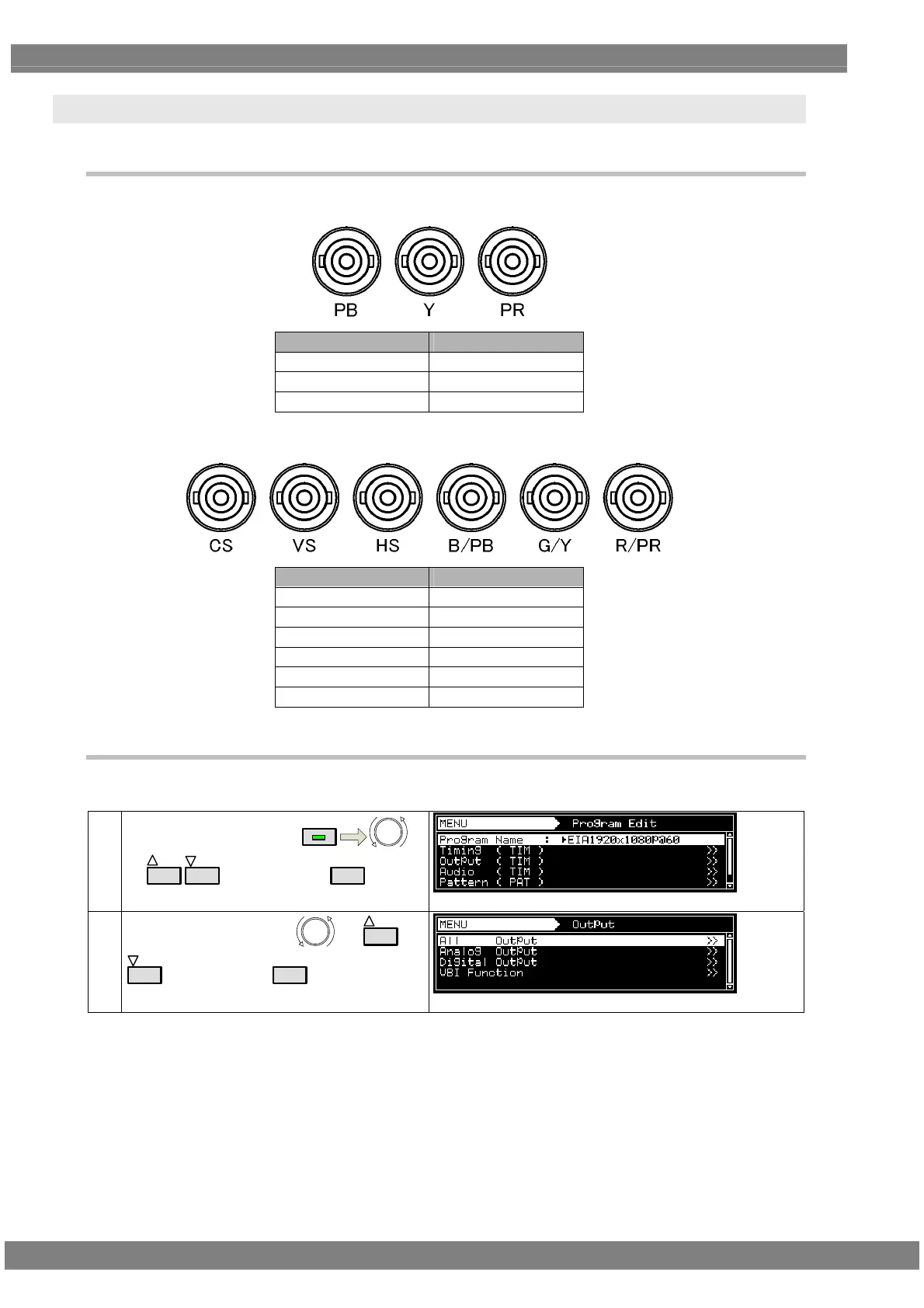 The analog component signals and output signals from the HS and CS connectors can be set for each program.