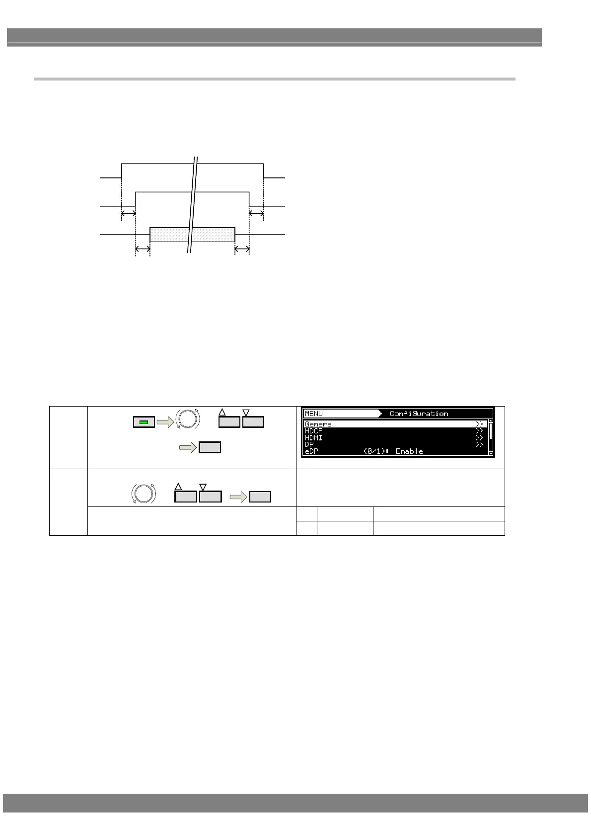 Note 2) While eDP Mode is Enable, and press “SIG ON” key, Power Sequence is executed by the setting value of