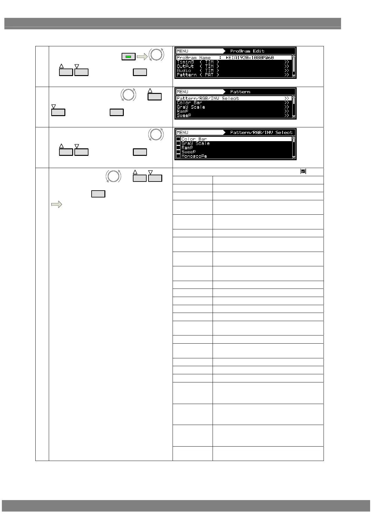 Select Pattern/RGB/INV Select using
