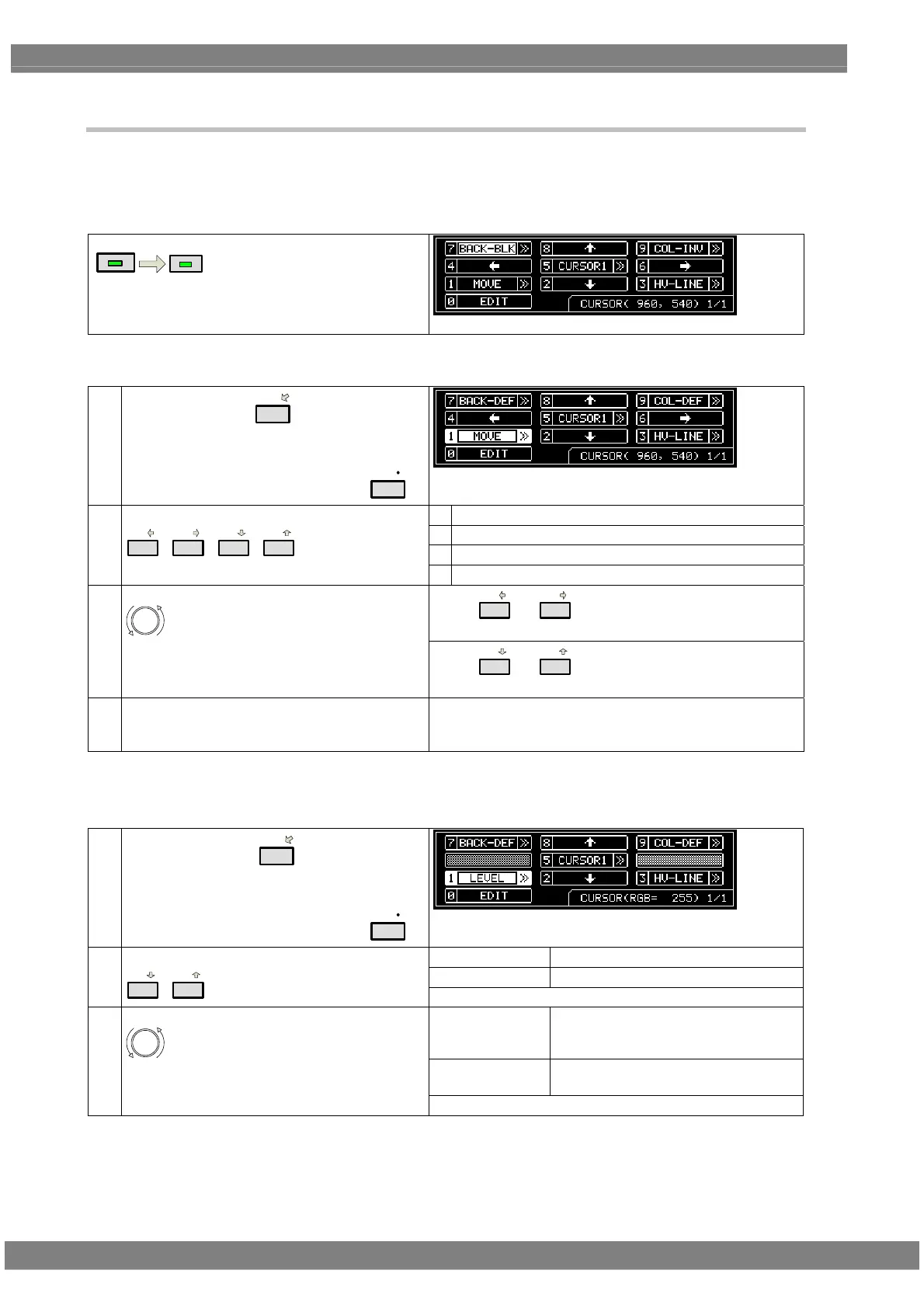 These steps change the Color Cursor 1 R, G, B and Color Cursor 2 R, G, B settings.