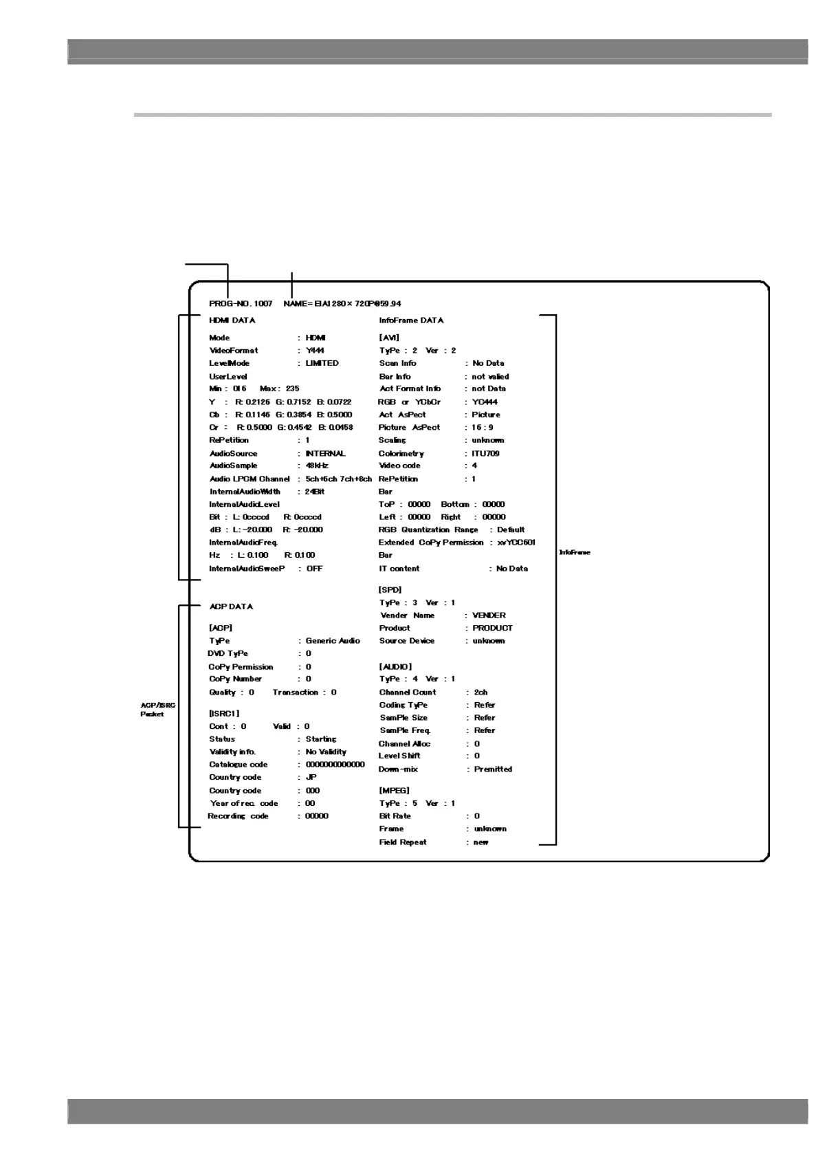 Example: HDMI list when EIA 1280 × 720 and 59.94 Hz output signals are supplied to the display