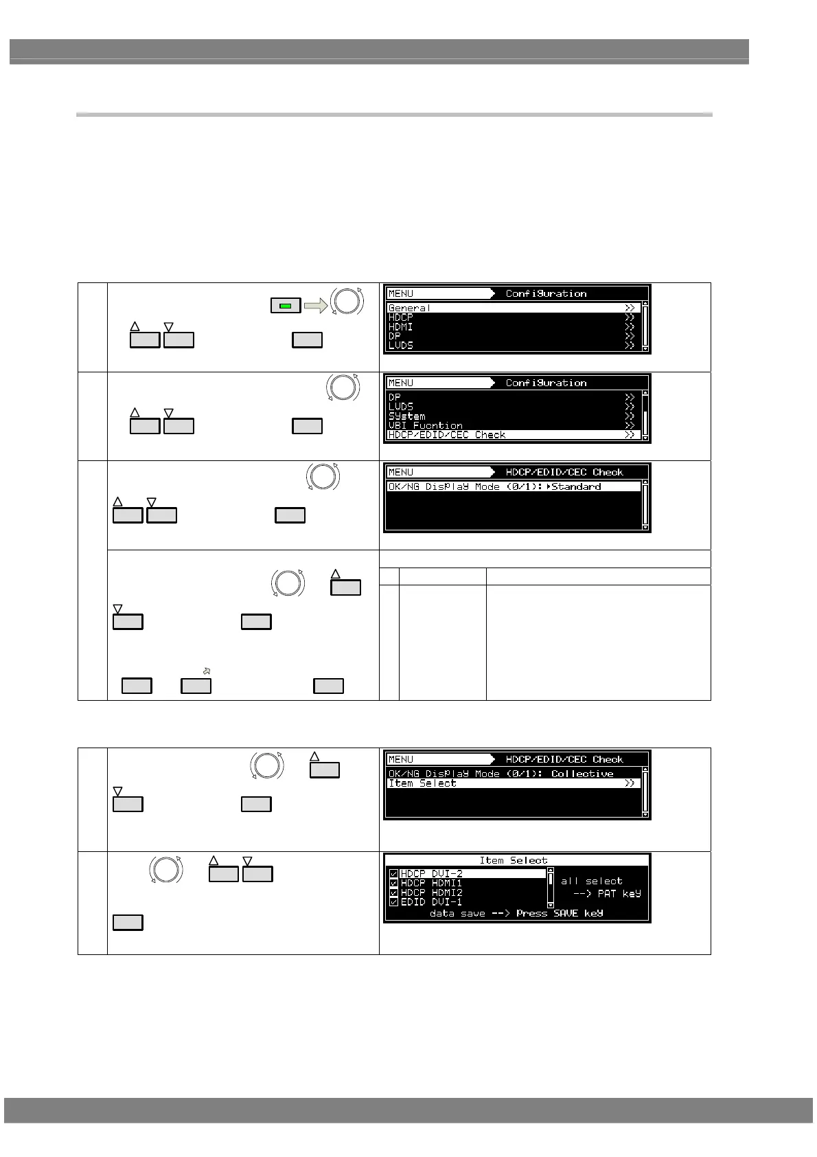 When OFF has been selected as the List display setting, the results of the HDCP/EDID/CEC check can