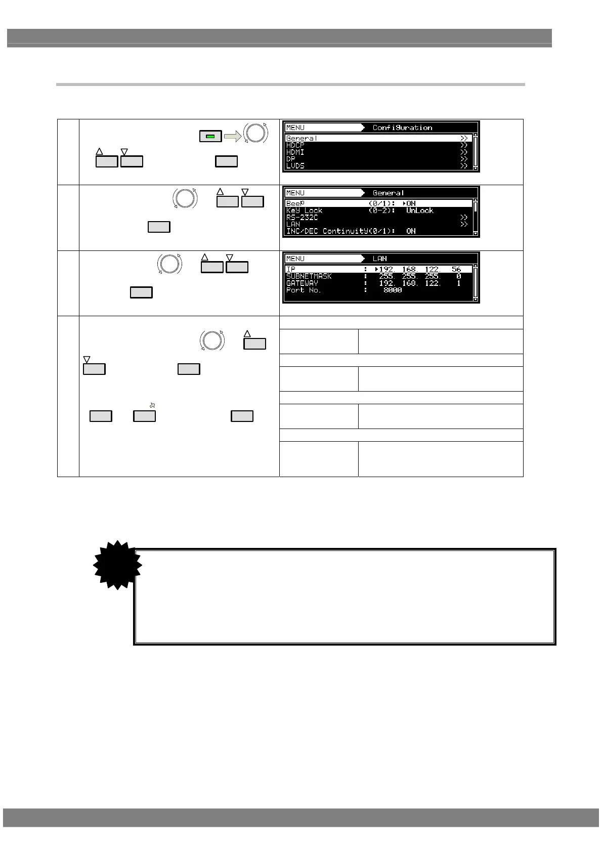 These settings are performed when connection to the terminal is to be established from the LAN port.