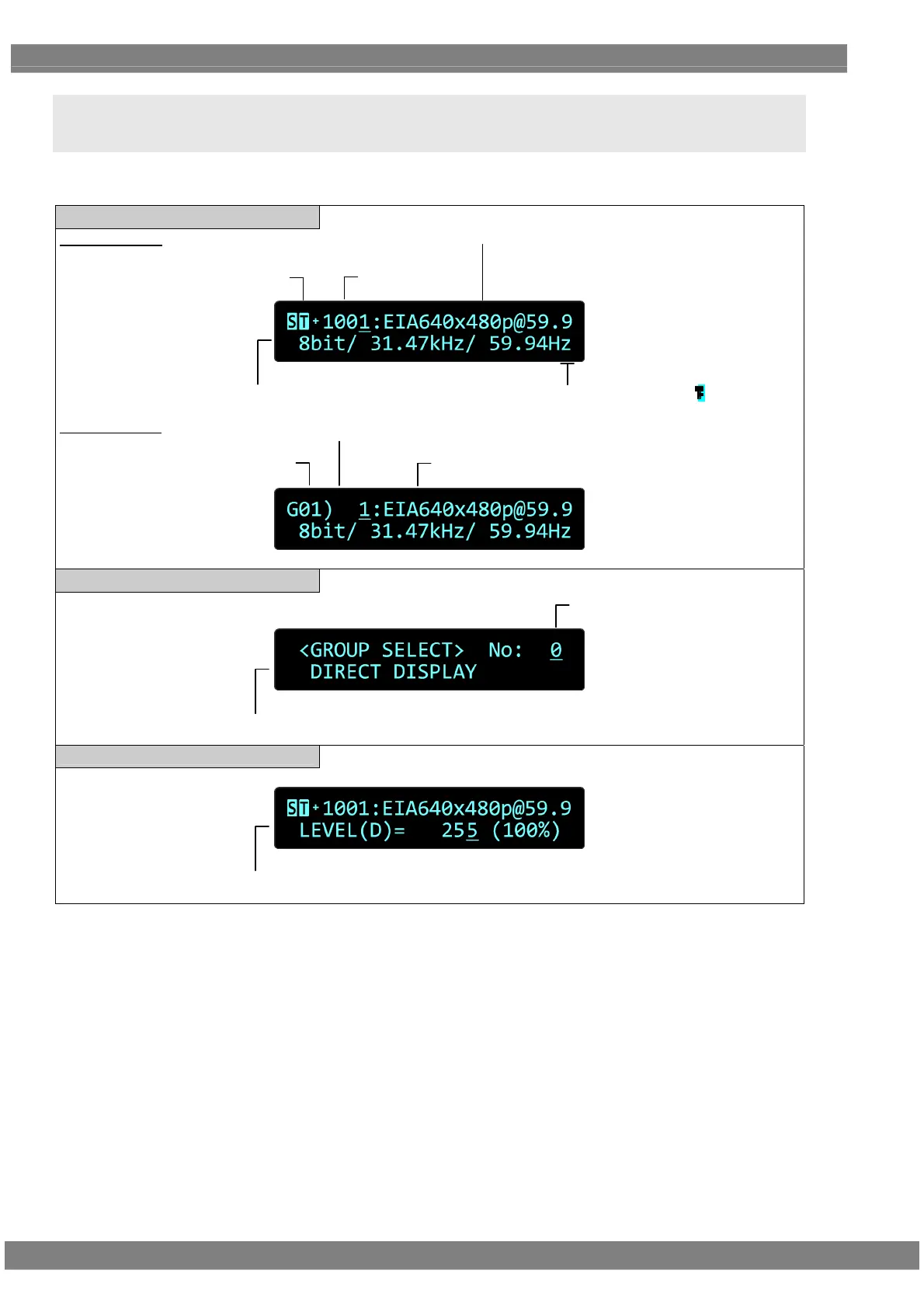 2.6 Displays appearing on the VG-871B / 874 fluorescent