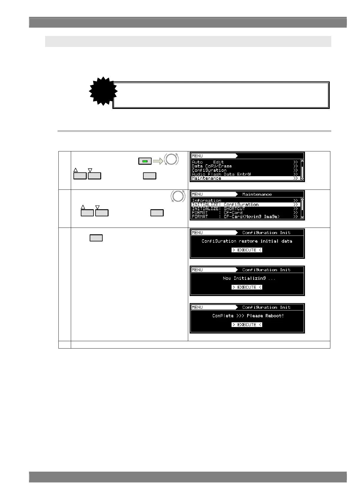 Select INITIALIZE: Configuration using