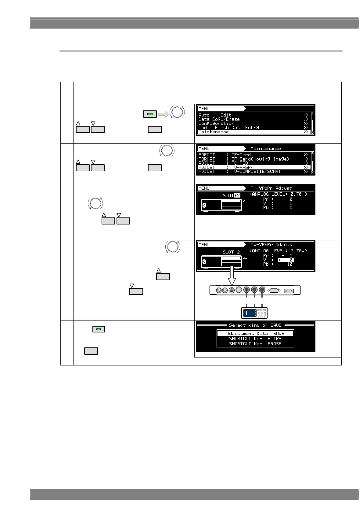 The YPbPr video levels of the TV encoder unit will be adjusted in this section.