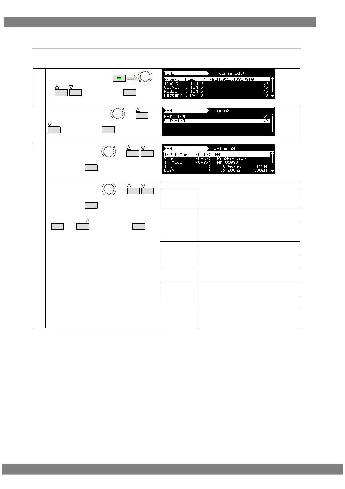 Described below is the procedure used to set the parameters which can be changed with the vertical timing data.