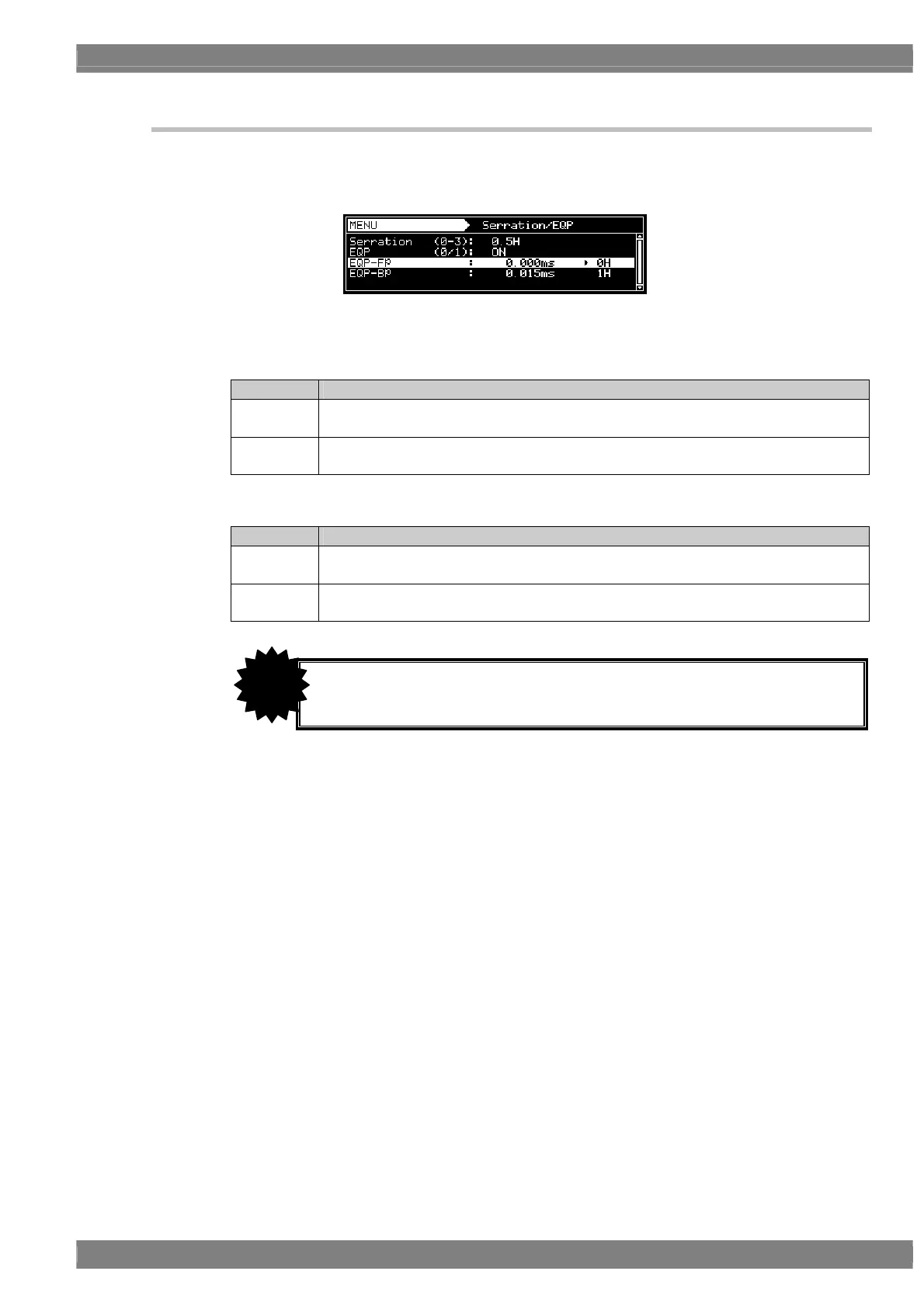 EQP-Fp/EQP-Bp setting procedure