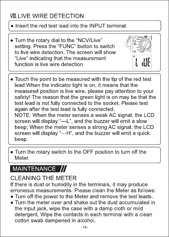 NOTE: When the meter senses a weak AC signal, the LCD