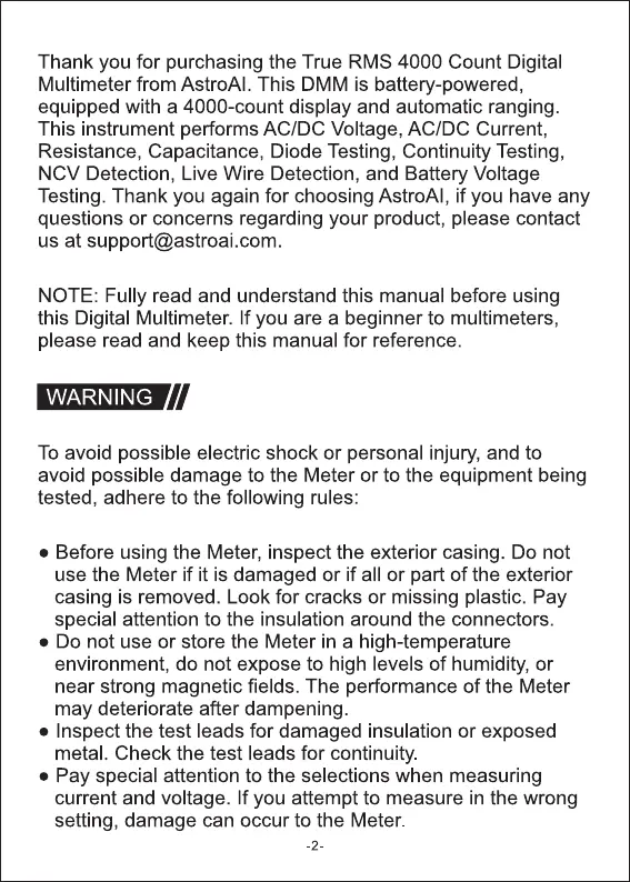 Thank you for purchasing the True RMS 4000 Count Digital