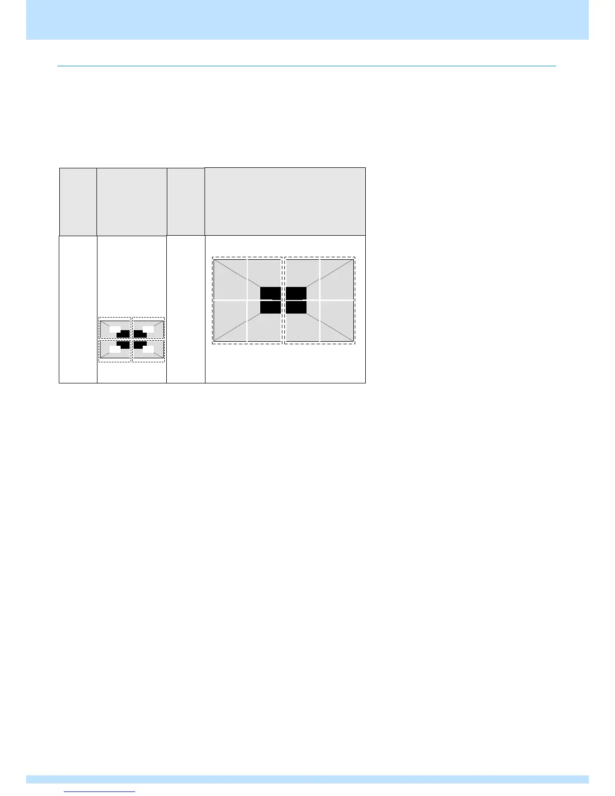 The screen split methods that can be supported when synchronizing 2 VG units are as follows.