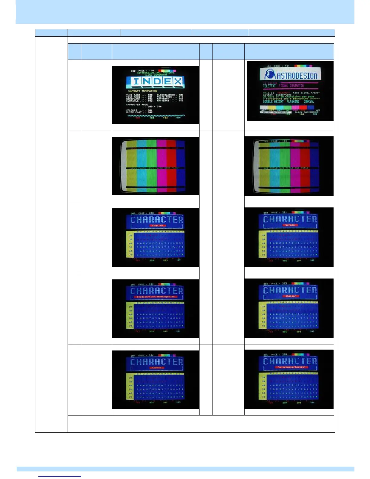 ● Teletext default page list