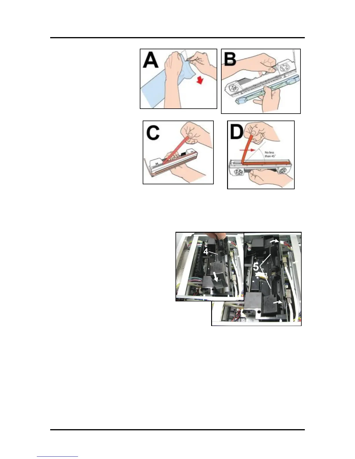 DO NOT pull the strip at less than a 45° angle from the Printhead surface.