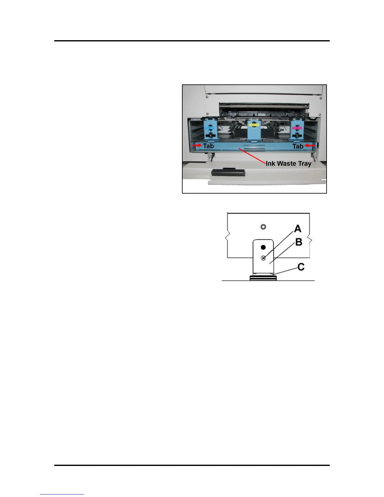 The Ink Waste Tray soaks up any excess ink that may drip from the Print Engine during operation. After a