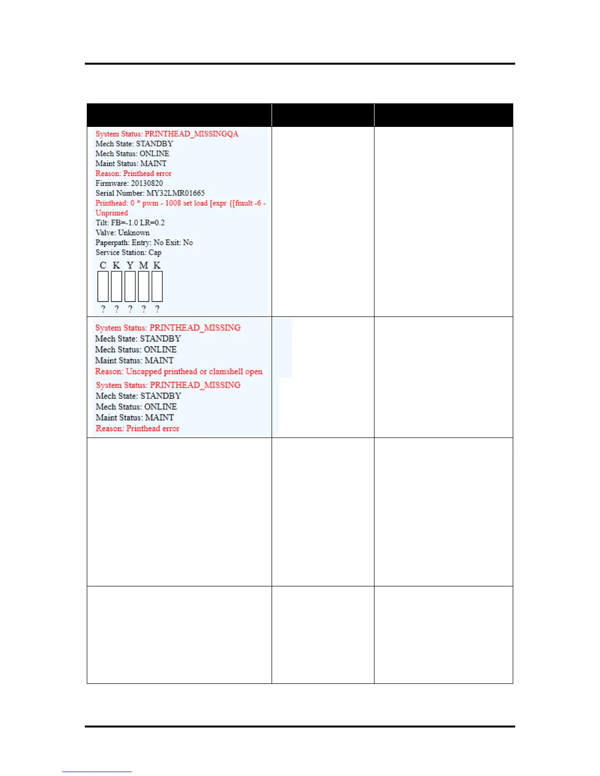 Printhead missing and