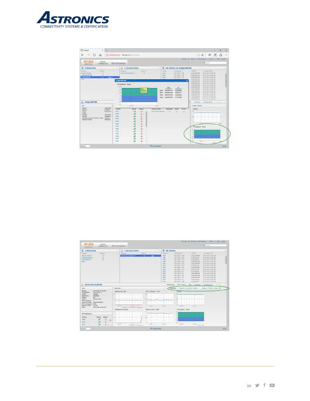 see the Blue selectable text: Radio 1: 2.4 GHz… and Radio 2: 5 GHz…. Selecting one of these text