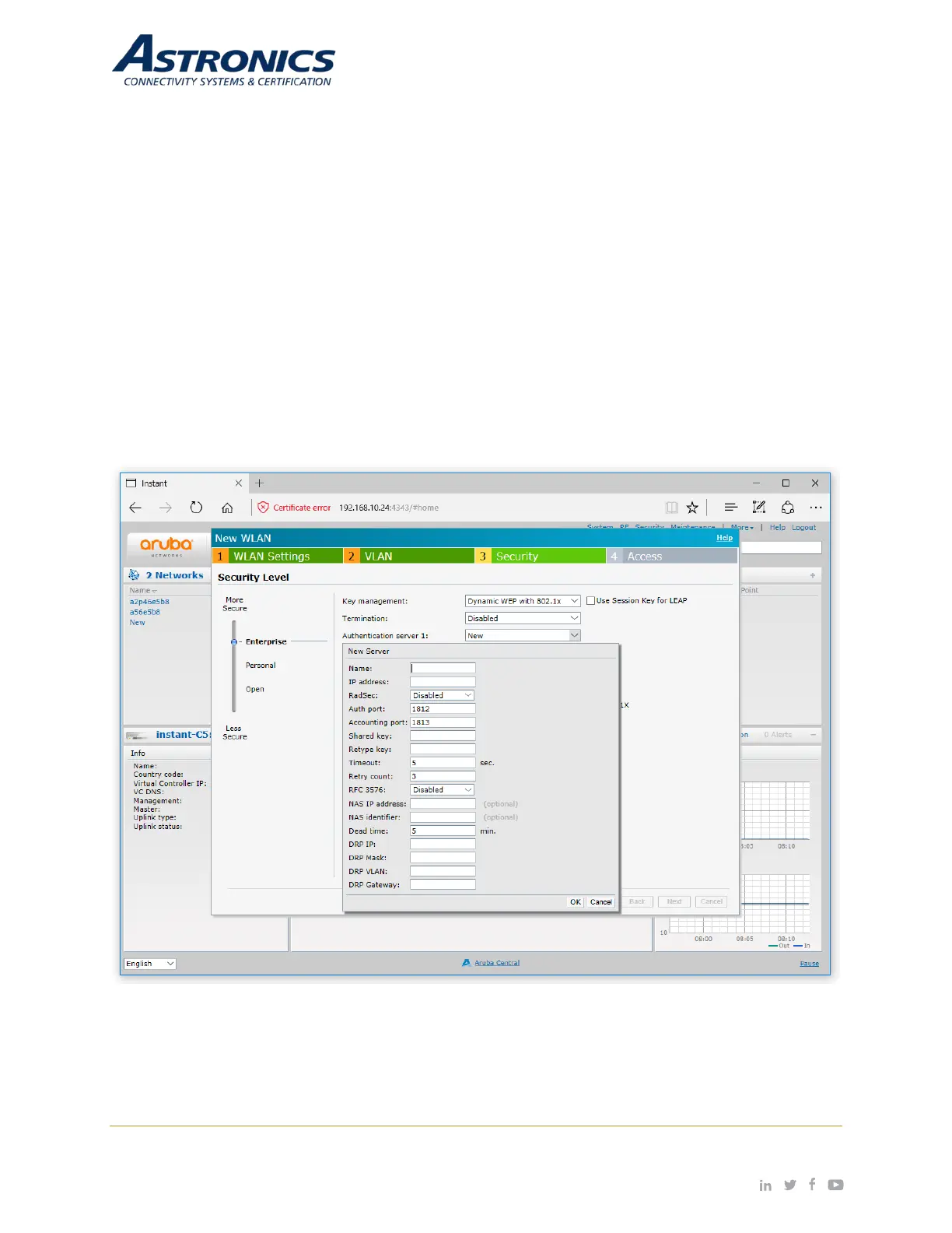 Selecting the Enterprise level allows you to configure an external RADIUS authentication server, as shown