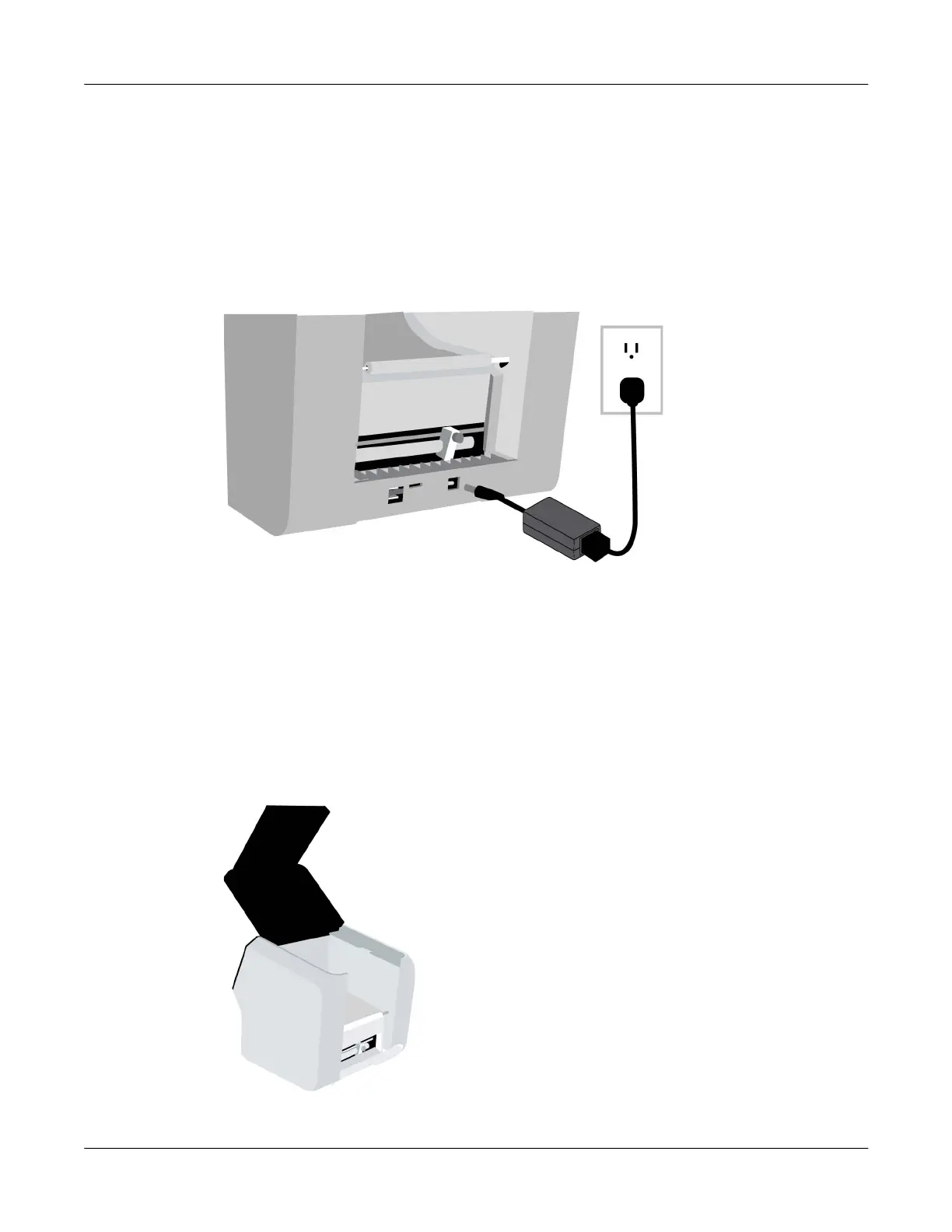 1. Connect the power cable to the power adapter. Plug the adapter’s power cord into the printer’s