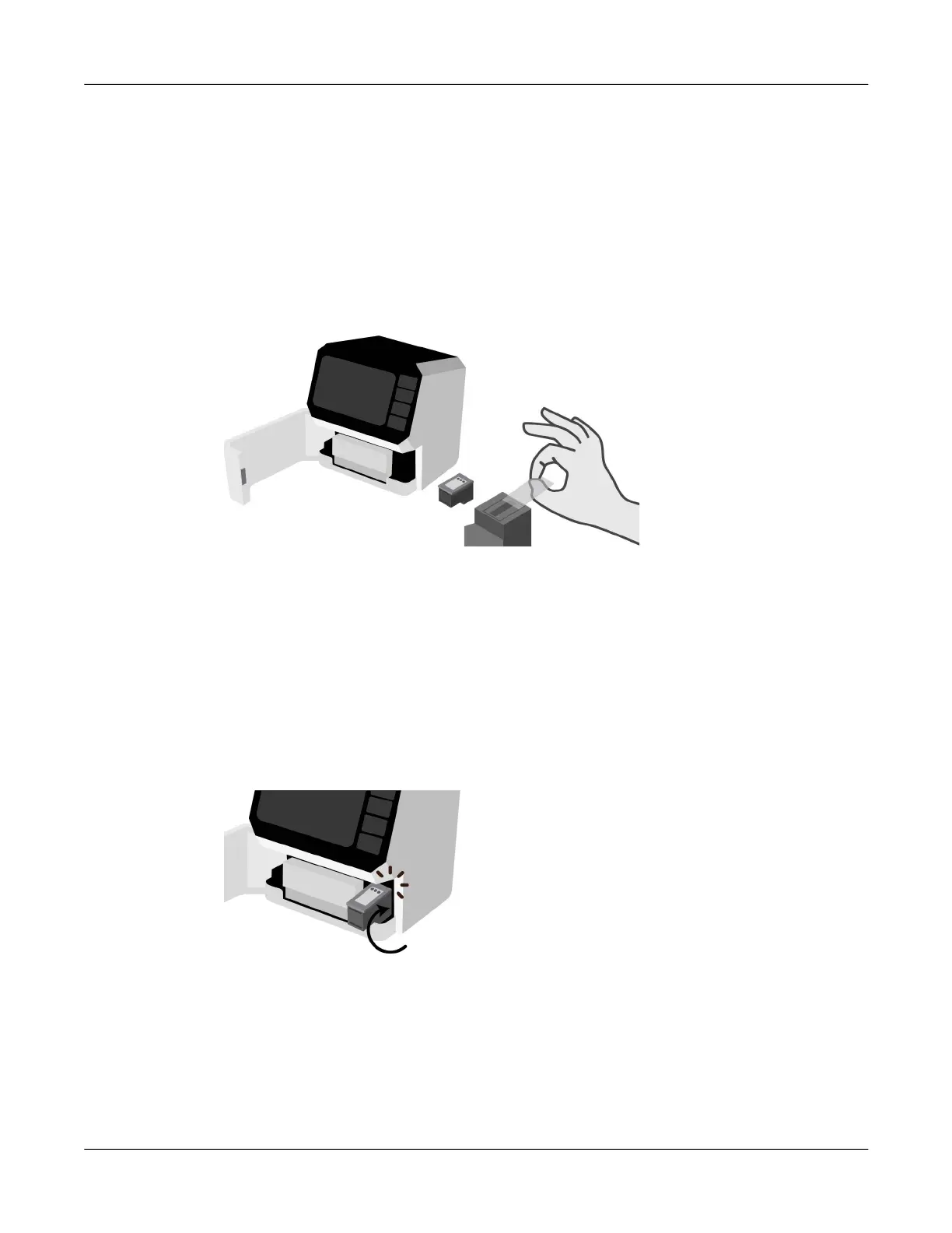 and press it into the cradle. When installed properly, the ink cartridge will be held in place and