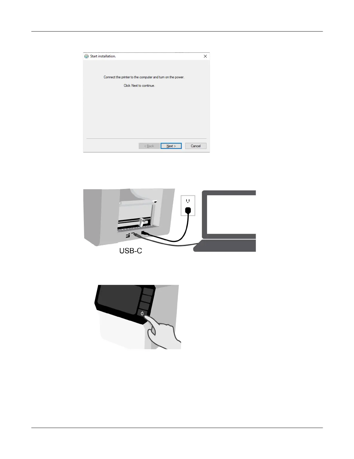9. Use the supplied USB cable to connect the printer’s USB-C port to an available USB port on