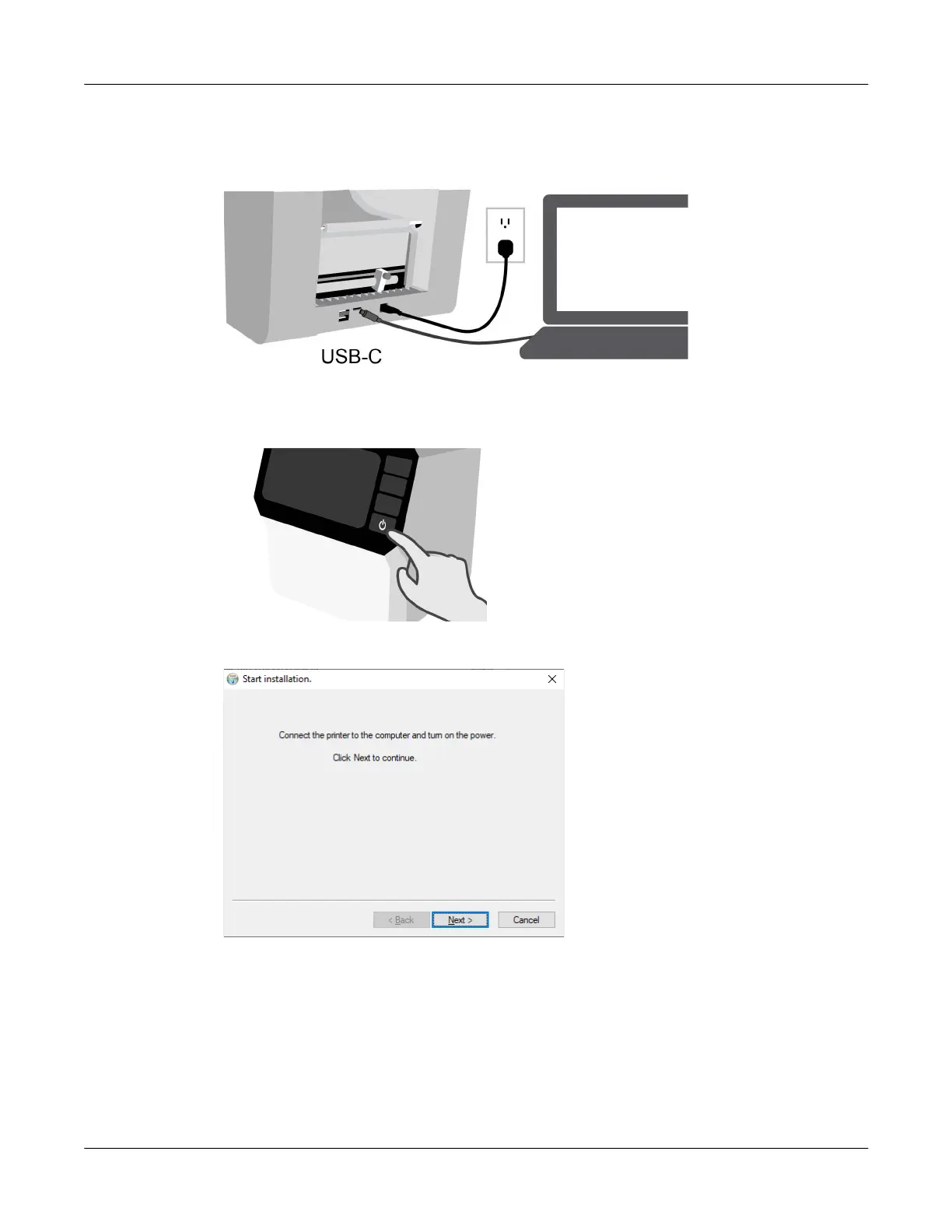 11. Use the supplied USB cable to connect the printer’s USB-C port to an available USB port on