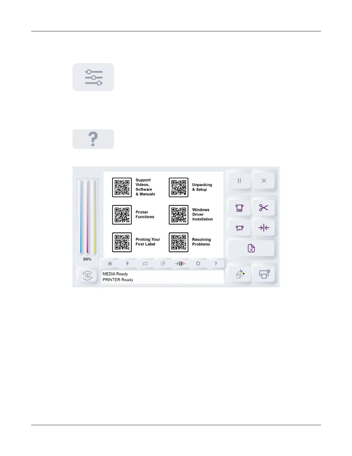 AstroNova QuickLabel QL-E100 - Maintenance Controls; Printer and Media Status