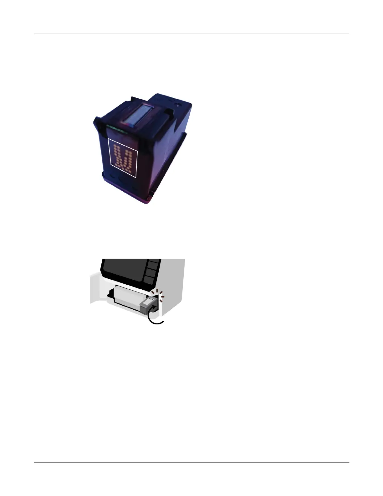 and press it into the cradle. When installed properly, the ink cartridge will be held in place and
