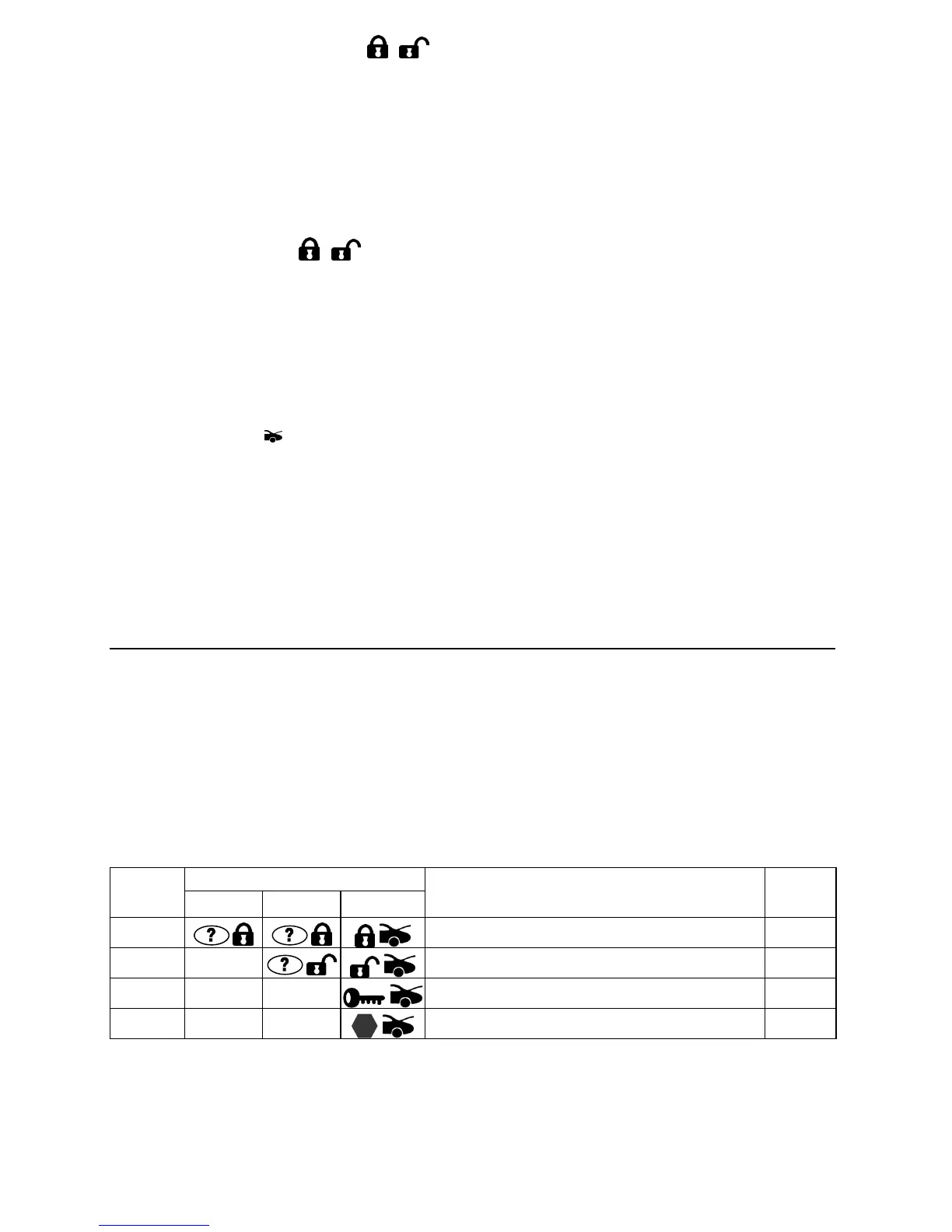 disarmed by sending an ‘Unlock’ command. The indicator light (optional) blinks continuously when antitheft system is armed