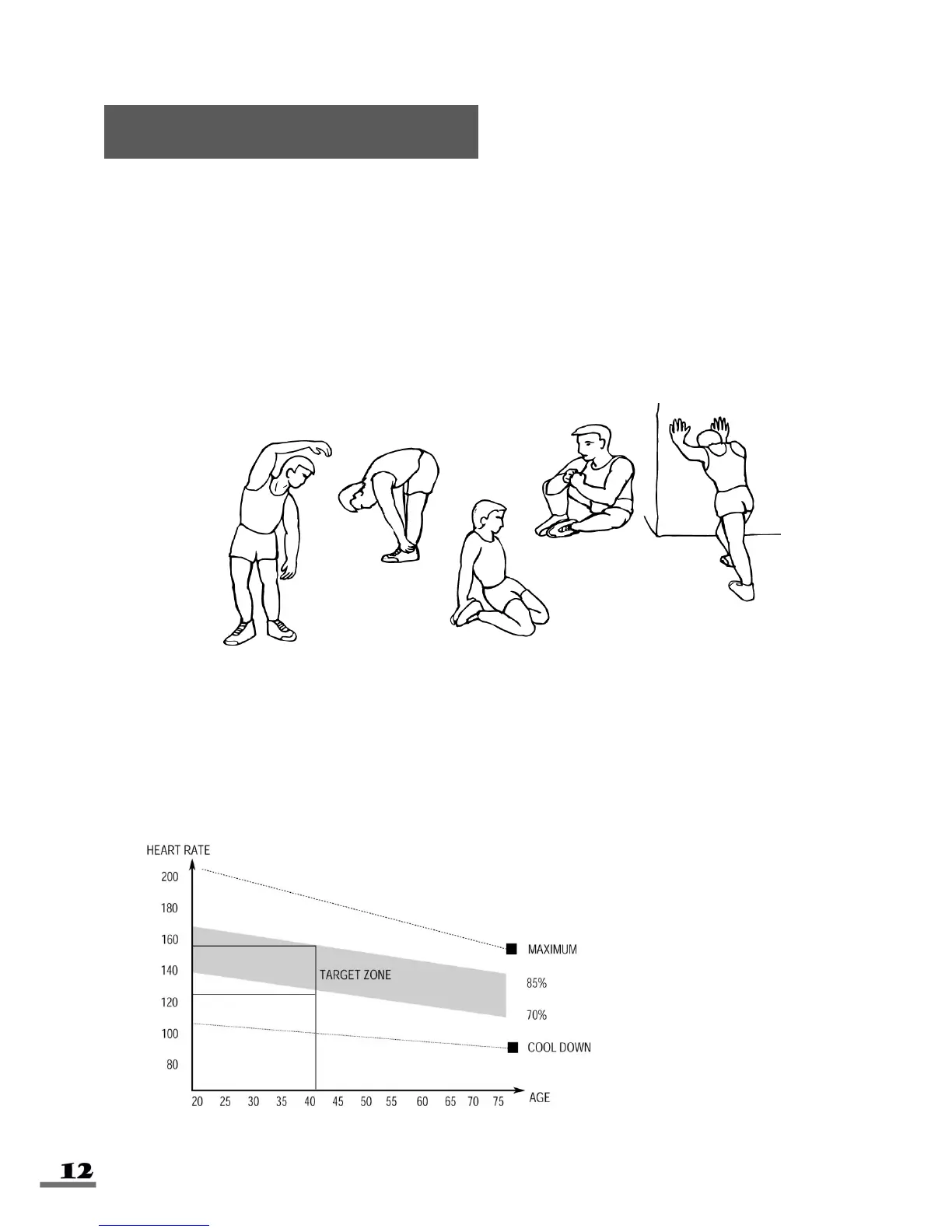 It is advisable to do a few stretching exercises as shown below. Each stretch should