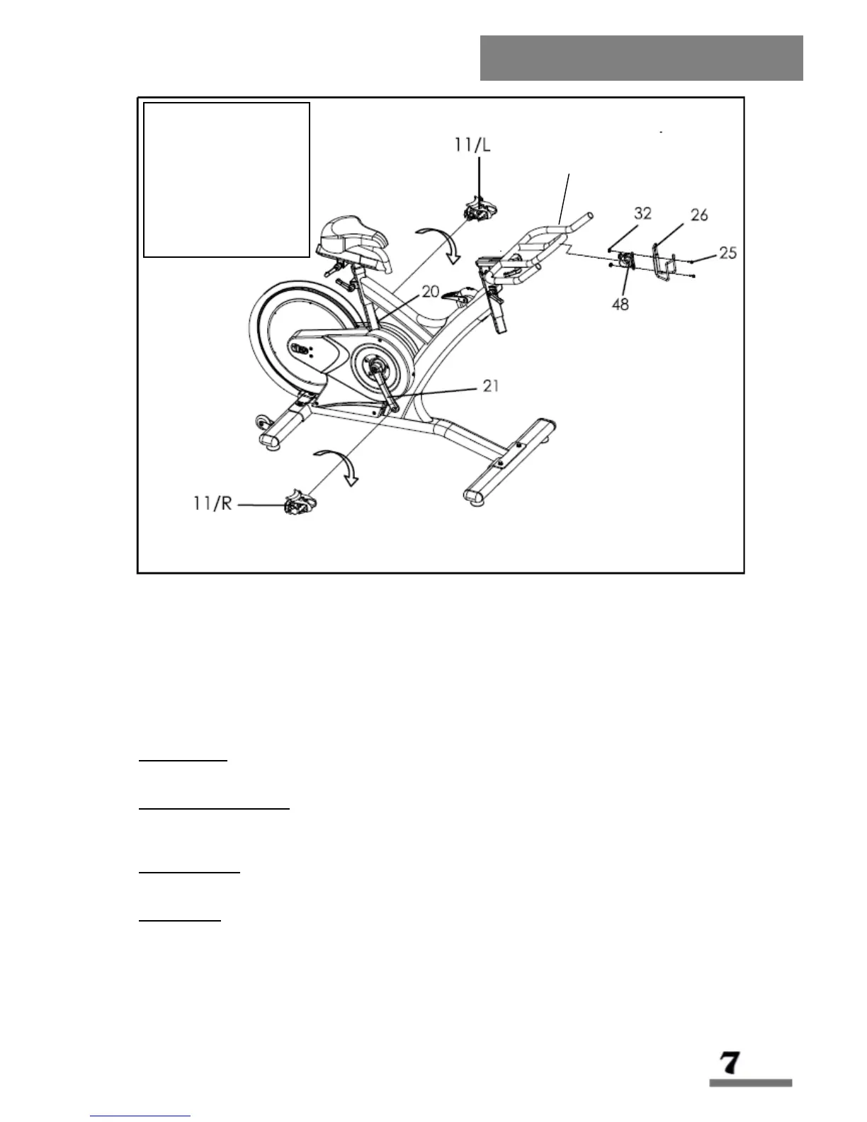 NOTE: Pedals L/R (11) are marked, L for the (left pedal) and R for the (right