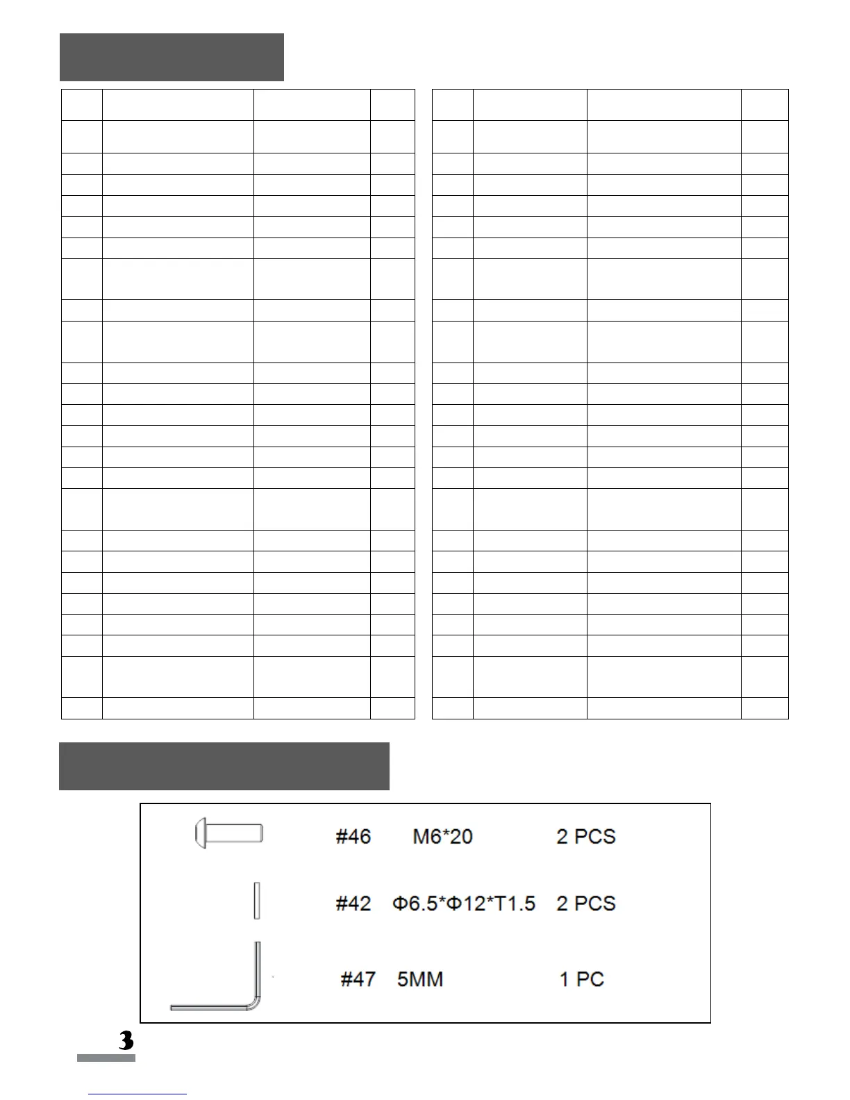ASUNA 7700 - Parts List; Tools & Hardware