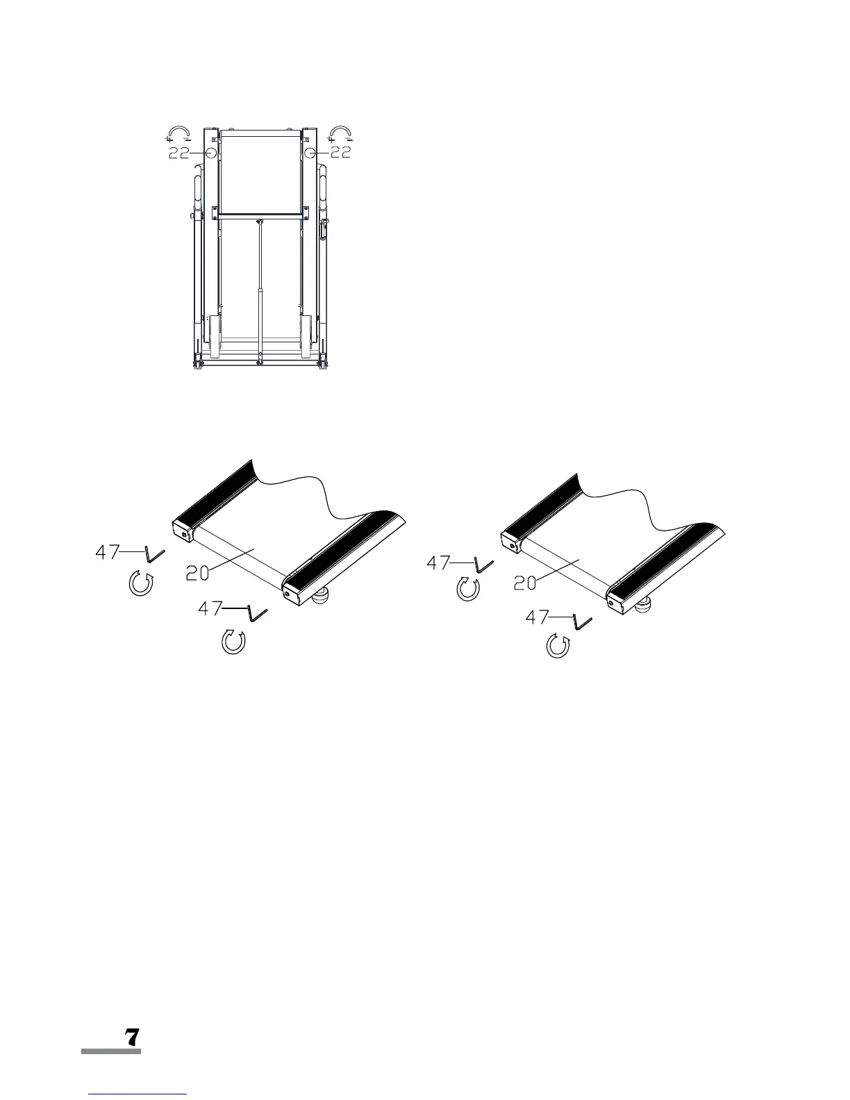 Use Allen Wrench (No. 47) to adjust the Running Belt (No. 20).