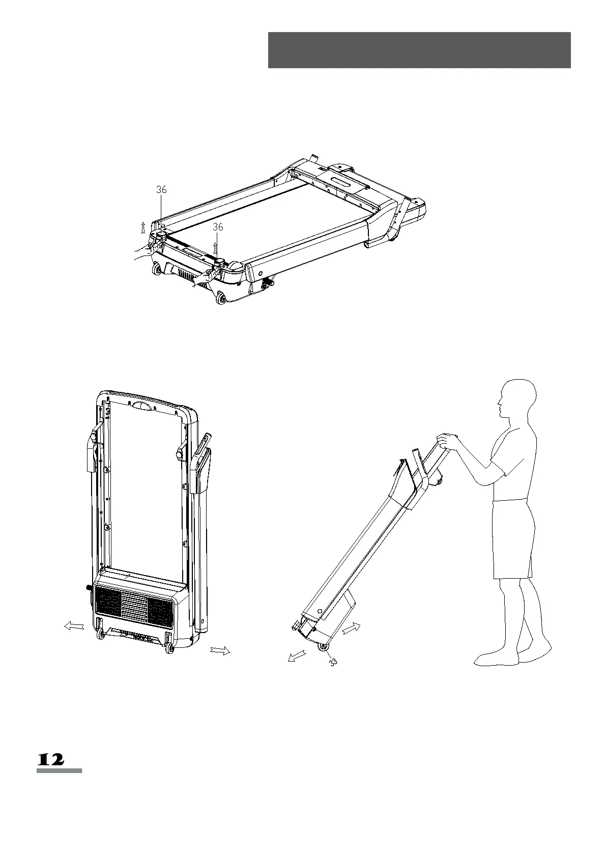 treadmill towards you until the Transportation Wheels (No. 33) on the front base touch the