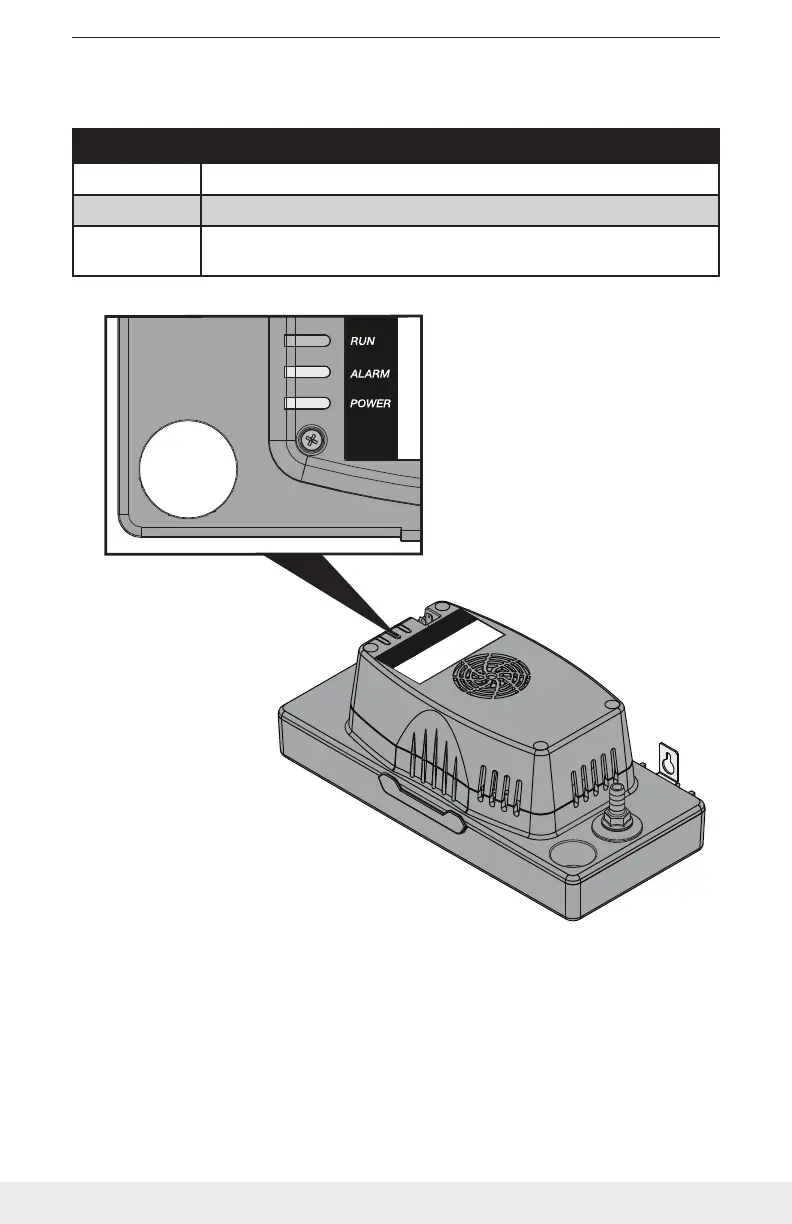 Red LED Indicates pump is in alarm mode and that the system is shuto/