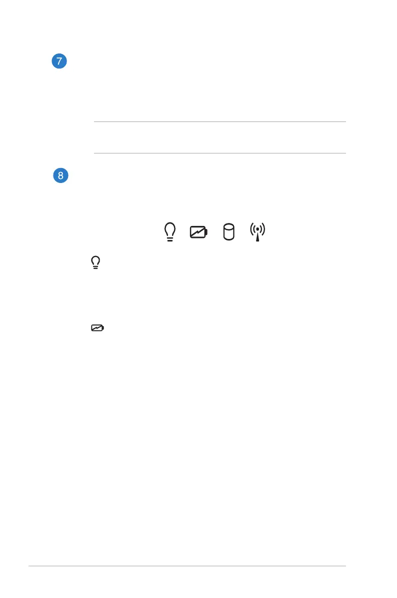 The power indicator lights up when the Notebook PC