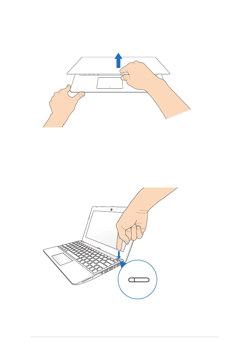 Asus 1015E - Lift to Open the Display Panel; Press the Power Button