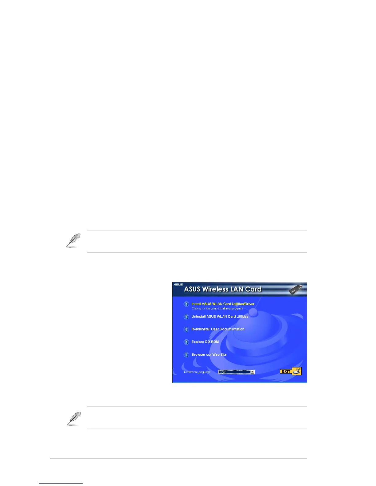 NOTE: You must install the ASUS USB Wireless LAN Adapter drivers and