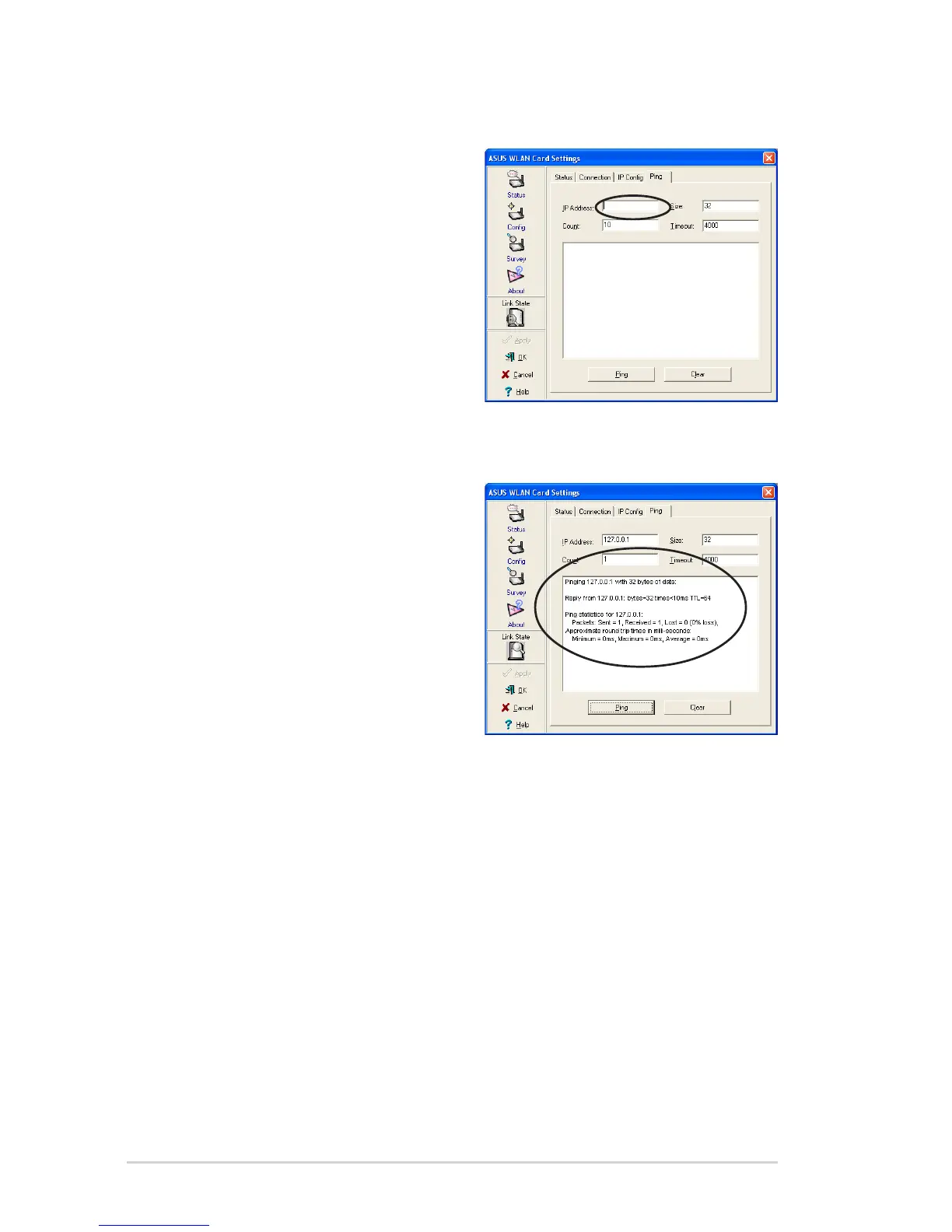 3. Click the Ping button.