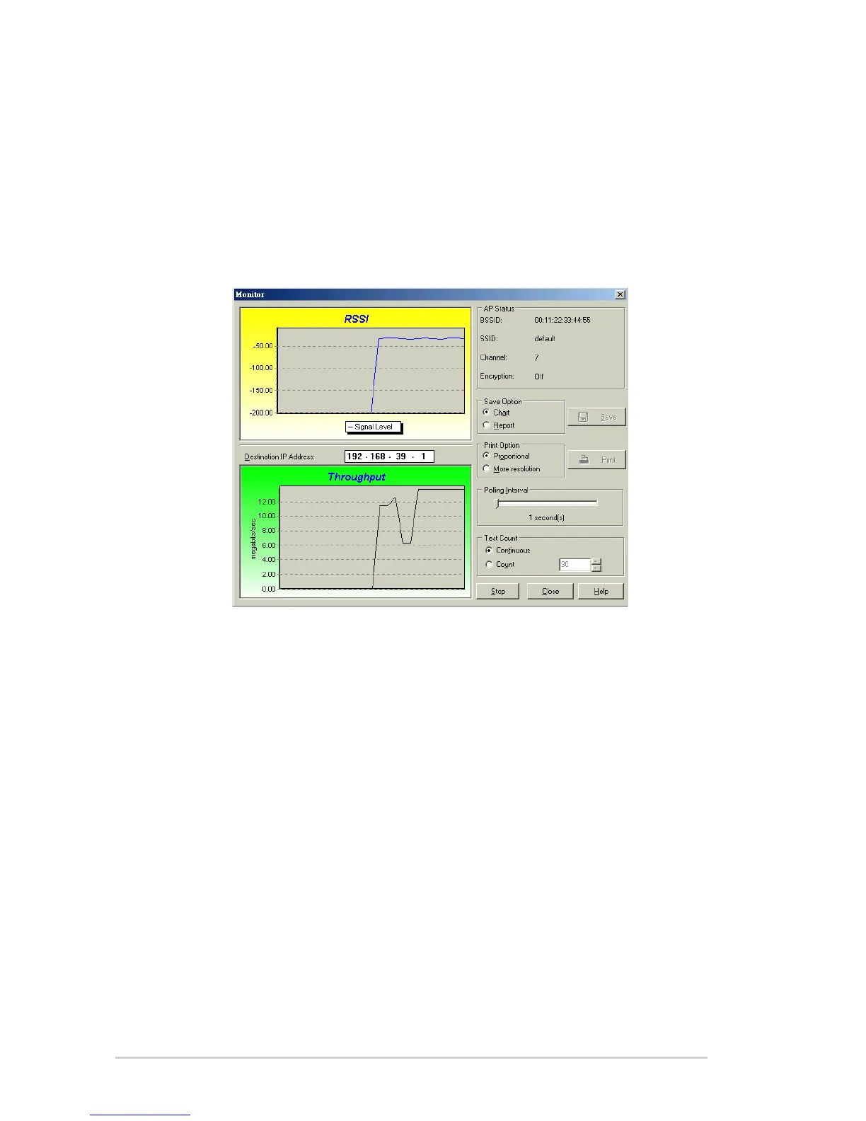 begin the link test. Click the Stop button at any time to stop the test.