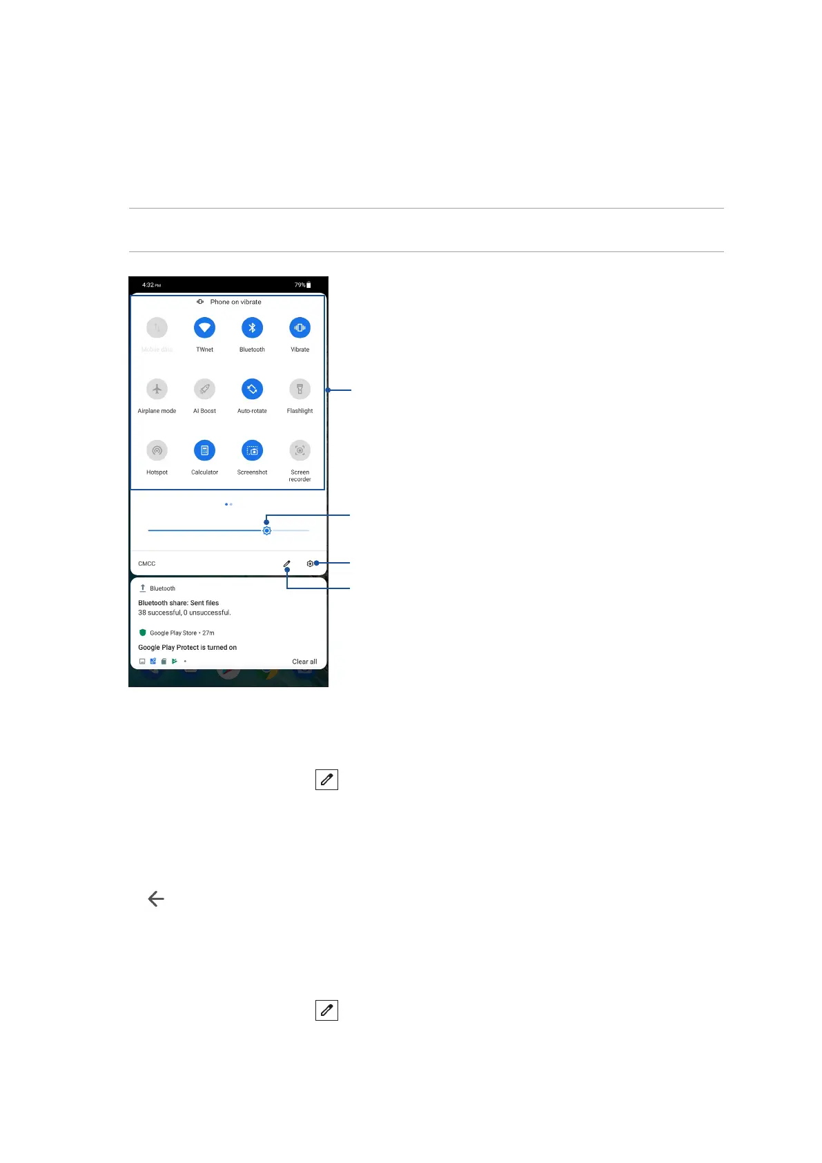 The Quick settings panel provides a one-tap access to some of the wireless features and settings of