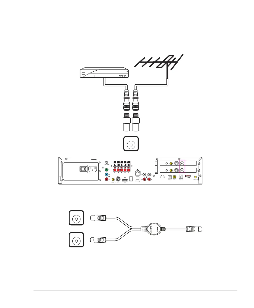 provided splitter, and then connect the splitter outputs to the two TV IN jacks on the DAV Center rear panel.