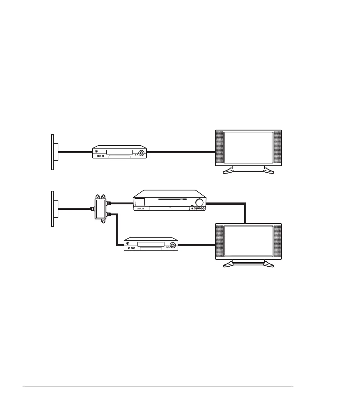 2. Connect two coaxial cables to the splitter outputs.