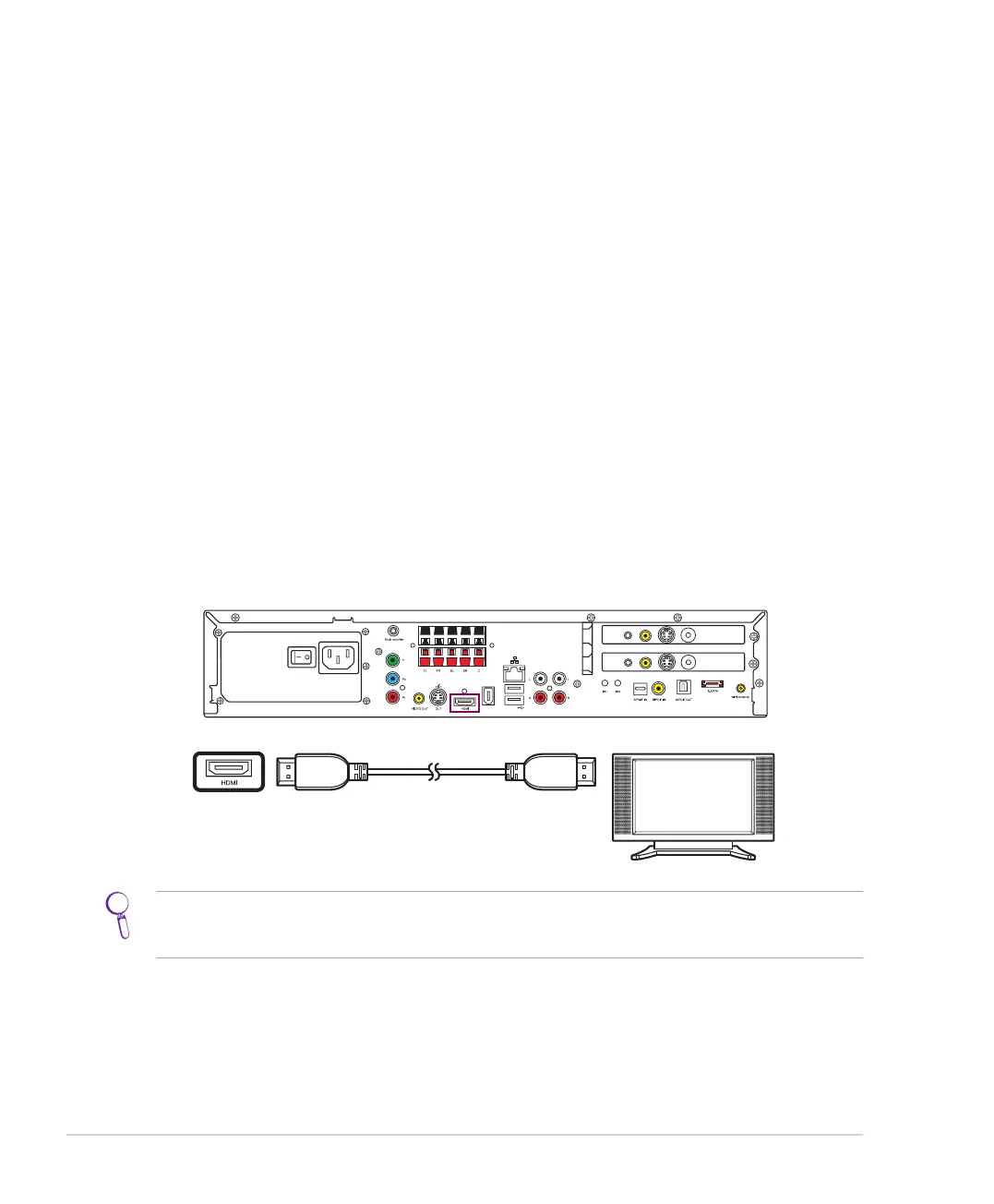 2. Connect the HDMI cable to the HDMI connector on the TV and to the HDMI connector on the back of