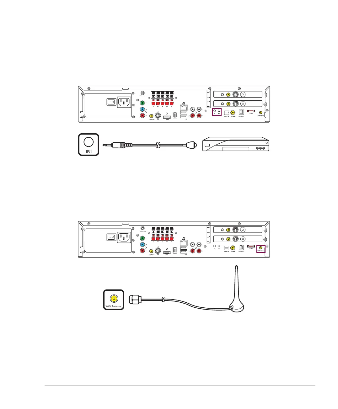 1. Connect one end of the IR blaster cable to the IR1/2 port on the back of your DAV Center.