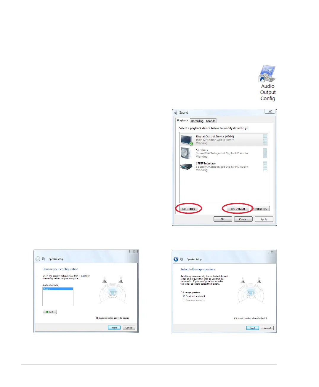 1. From the Windows® desktop, double-click on the Audio Output Config icon.